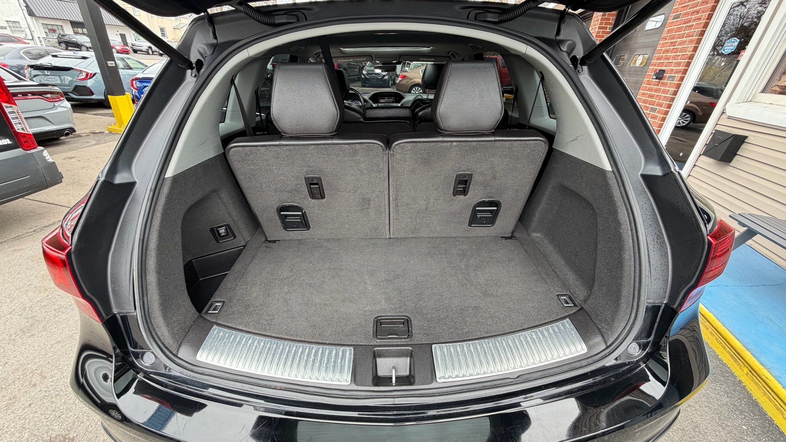 Third-row seatback upholstery: Carpet third-row seatback upholstery