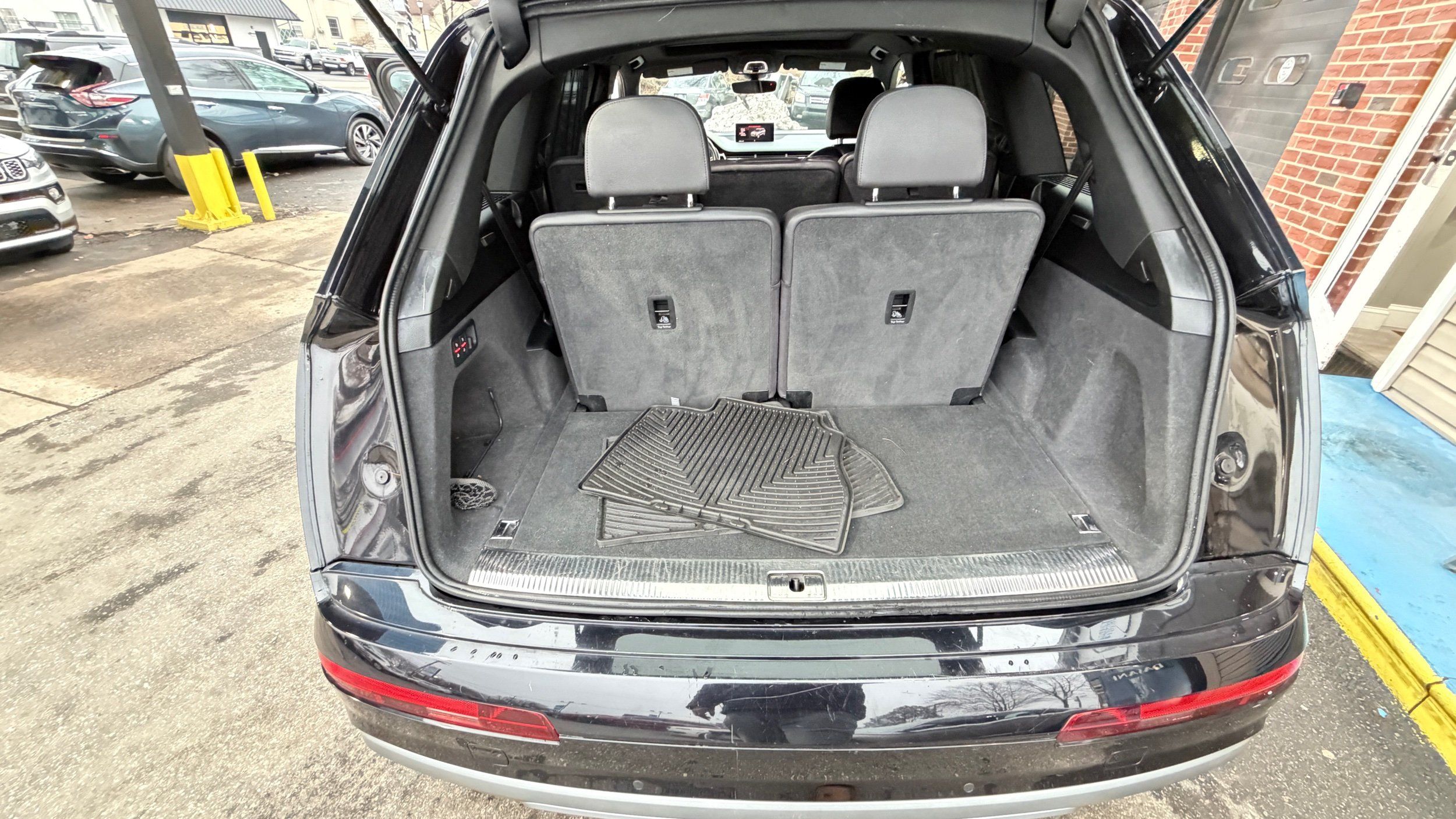 Third-row seatback upholstery: Carpet third-row seatback upholstery
